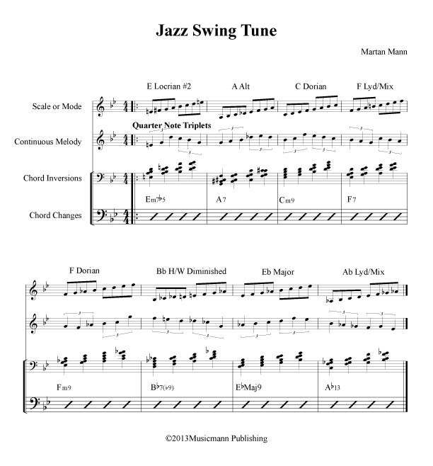 Developing the Continuous Melody Exercise playing through the “Jazz Swing Tune”: