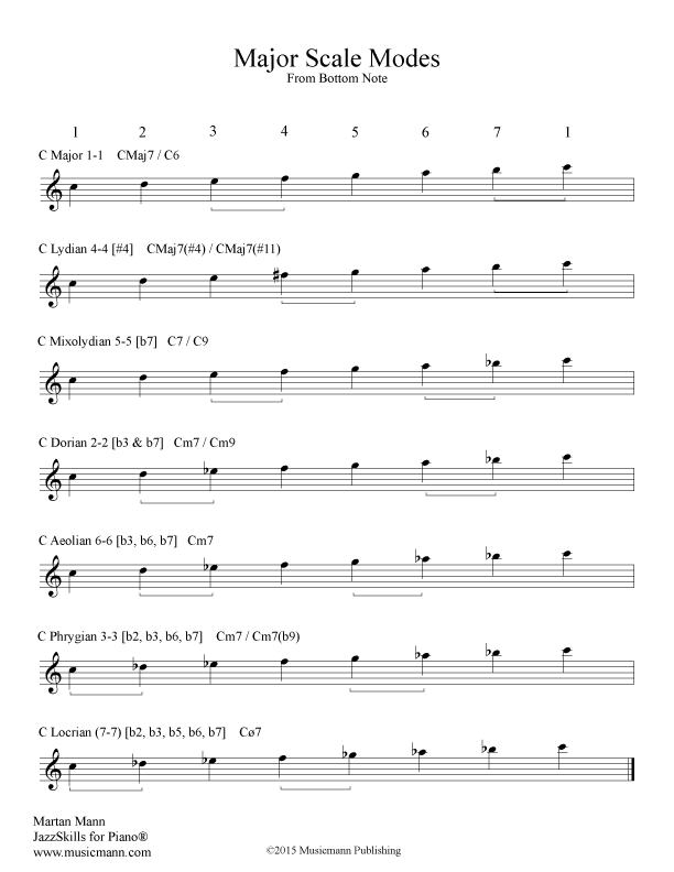 When we learn the Major Scale Modes from the "jazz perspective", we have to learn the modes from the bottom note. For instance, when we learn a scale we usually learn and play it from the bottom note. A C Major Scale usually is played from C to C.