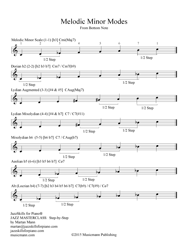 Learning the Melodic Minor Scale Modes from the Bottom Note