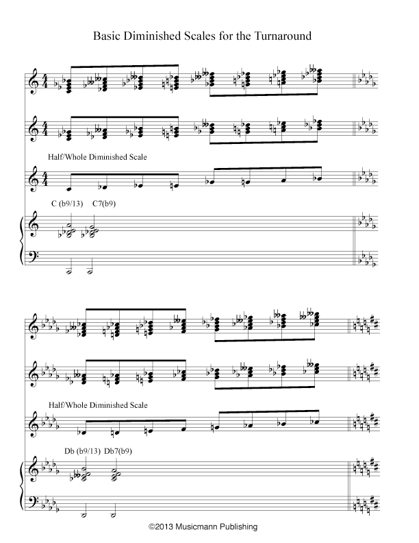 - I can play a C Half/whole Diminished Scale over the C(b9) (13) chord and the C7(b9) chord.