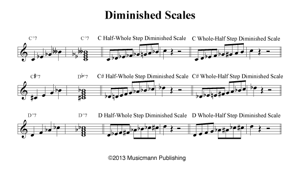 - I can play up the Half/Whole Diminished Scale using Diminished Triads and Diminished Seventh Chords.